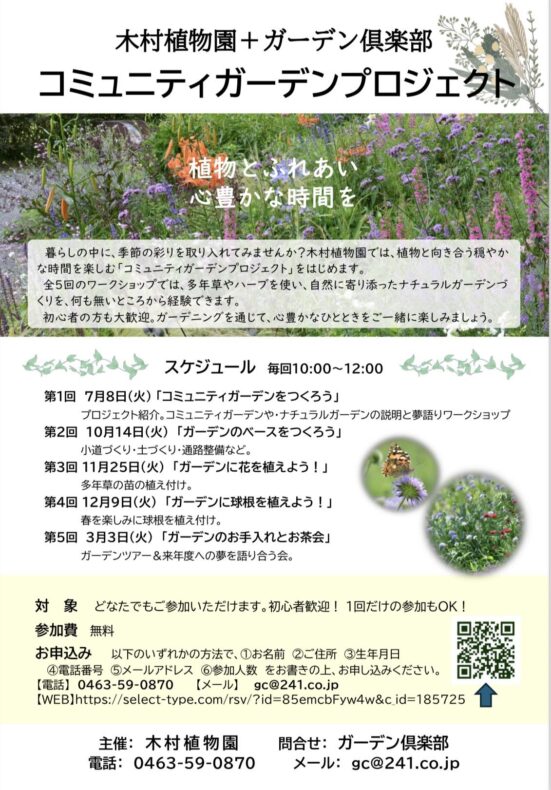 東京からはちょっと遠いですが、たった5回で、グリーンワークスがコーディネートするコミュニティガーデンづくりを体験できる、ほぼ無い機会です。(自治体とかからの依頼だと、市民に限られたりして一般の人は参加してもらえないことも多いのです) ガーデンのすぐそばに巨大な多年草も含む苗の販売エリアがあることも、ここの魅力&面白さのひとつ。